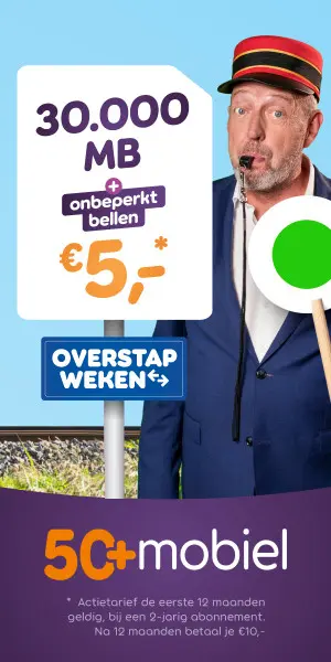 50+ mobiel maakt Sim Only lekker overzichtelijk: je kiest een 5G SIM Only pakket met onbeperkt minuten en onbeperkt SMS, en bepaalt vooral hoeveel MB’s je nodig hebt. De bundels starten bij 4.000 MB en lopen op tot 70.000 MB, met prijzen die op de site worden weergegeven (bijv. € 6,00 tot € 14,00 per maand) en een actietarief van € 1,00 in de actieperiode. Fijn is ook dat je gebruikmaakt van het Vodafone-netwerk en dat 5G/4G/2G wordt genoemd, inclusief maximale snelheden tot 200 Mbit/s download en 100 Mbit/s upload (in de praktijk afhankelijk van dekking en drukte).​
