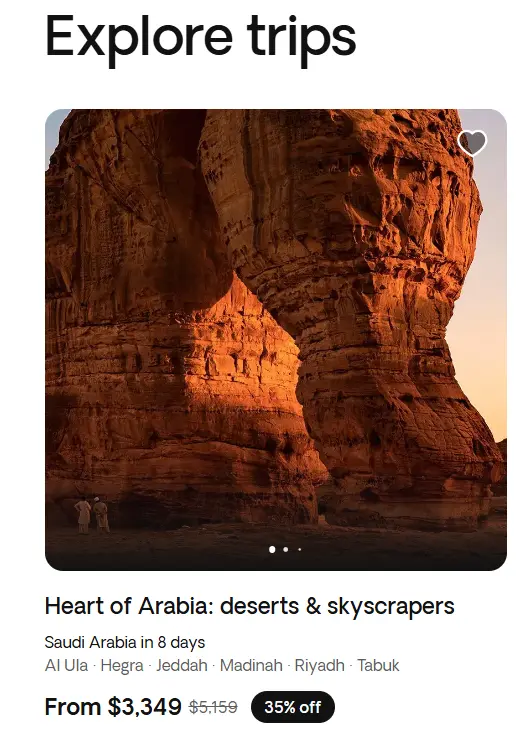 Urban landscapes, breath-taking deserts and fascinating culture – this journey is the ultimate Arabian experience. Jeddah’s Floating Mosque on the Red Sea, majestic views of the Prophet’s Mosque from Mount Uhud in Medina, AlUla’s historic cities of Dadan and Hegra, and Riyadh’s exciting Boulevard City live shows will leave you in awe.